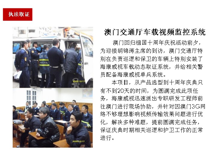 隨著無(wú)線傳輸技術(shù)和視頻監(jiān)控技術(shù)的快速發(fā)展,我公司經(jīng)過(guò)長(zhǎng)期對(duì)行業(yè)的需求調(diào)研和應(yīng)用探索,完全自主研發(fā)了針對(duì)公安、交警、運(yùn)管、路政等部門(mén)的移動(dòng)視頻監(jiān)控取證系統(tǒng)(移動(dòng)圖傳),成為治安監(jiān)控和治安管理的有力補(bǔ)充。建設(shè)移動(dòng)視頻監(jiān)控取證系統(tǒng),能將警力快速調(diào)動(dòng)到一線,實(shí)時(shí)記錄執(zhí)法過(guò)程,實(shí)時(shí)指揮執(zhí)法過(guò)程,獲得完整有效的證據(jù),快速達(dá)到執(zhí)法目的,規(guī)范化整個(gè)執(zhí)法過(guò)程,真正意義上實(shí)現(xiàn)城市治安點(diǎn)面結(jié)合的實(shí)戰(zhàn)應(yīng)用需求,真正意義上與用戶(hù)業(yè)務(wù)需求緊密結(jié)合,滿(mǎn)足用戶(hù)實(shí)戰(zhàn)需要。